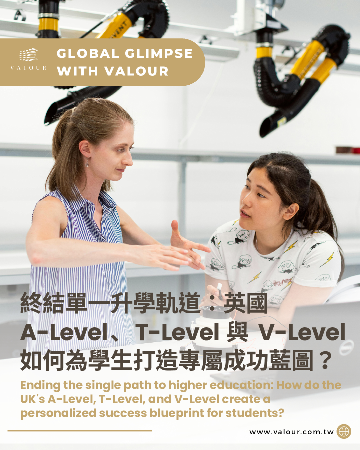 終結單一升學軌道:英國 A-Level 、T-Level 與 V-Level 如何為學生打造專屬成功藍圖?2026.4.23 閱讀更多 https://valour.com.tw/wp-content/uploads/2026/04/A-level-T-level-V-level-介紹貼文-pdf.jpg 1800 1440 service /wp-content/uploads/2022/07/logo1.png.png service2026-04-23 16:00:582026-04-23 16:00:58終結單一升學軌道:英國 A-Level 、T-Level 與 V-Level 如何為學生打造專屬成功藍圖?